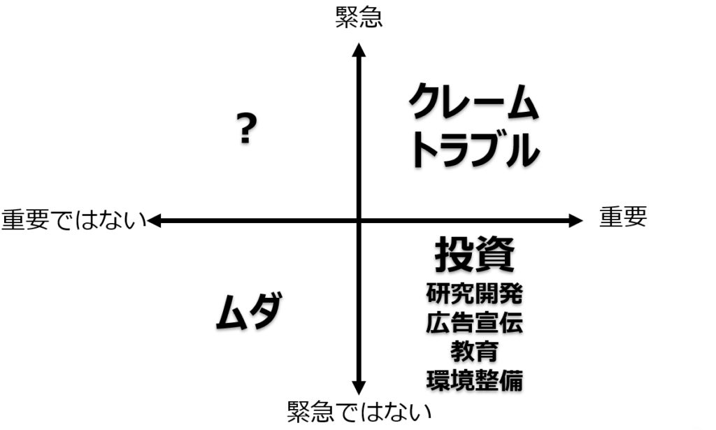 投資をすることで、「緊急」且つ「重要な」仕事の発生が最小化されます。